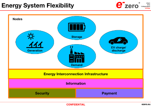 Key elements for distributed flexible energy systems are infrastructure nodes generation, storage, EV charging points, demand. Interconnection of nodes allows for enhanced flexibility for the whole systems. IT platforms and energy trading are enablers for flexibility. We provide: